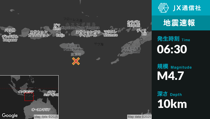 | 震源地 | インドネシアのWaingapuから南102kmの地点 |
