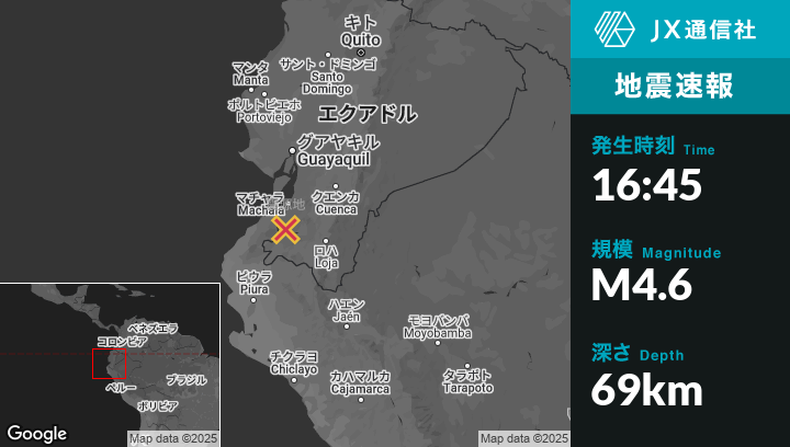 2月04日 16:45頃、ペルーのMatapaloから東北東20kmの地点でM4.6の地震がありました。