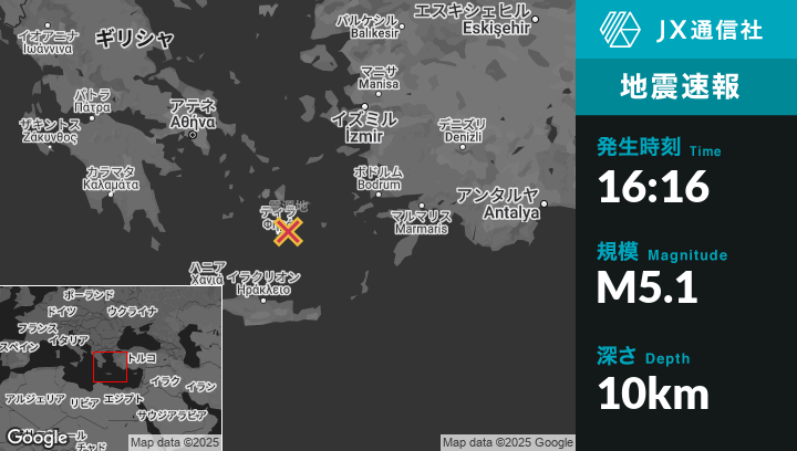 2月07日 16:16頃、ギリシャのFiráから北東22kmの地点でM5.1の地震がありました。