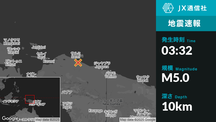 | 震源地 | インドネシアのAbepuraから西北西204kmの地点 |