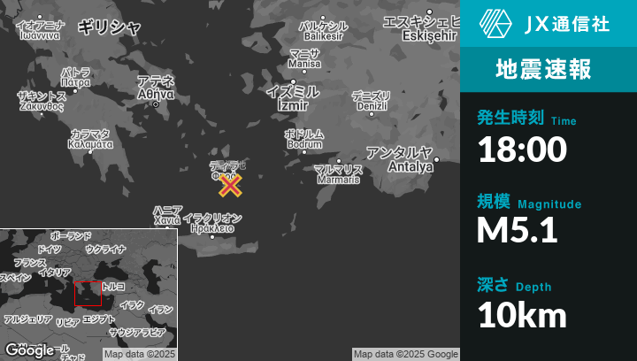 | 震源地 | ギリシャのMesariáから北東13kmの地点 |