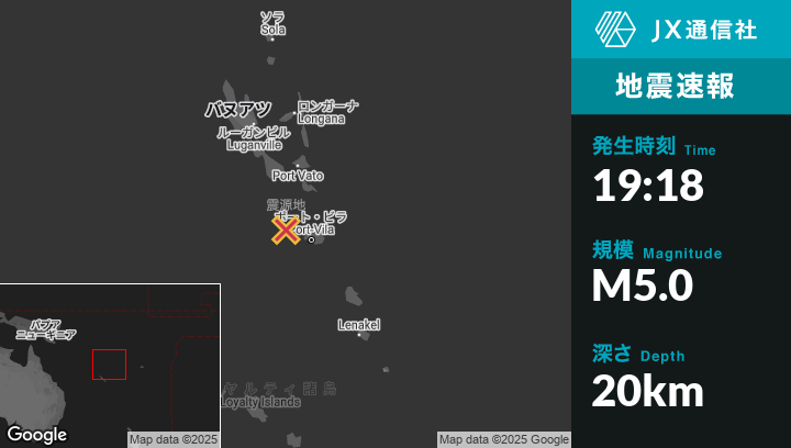 | 震源地 | バヌアツのPort-Vilaから西北西63kmの地点 |