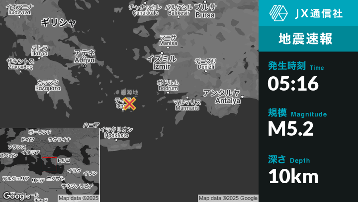 2月11日 05:16頃、ギリシャのAmorgósから南西20kmの地点でM5.2の地震がありました。