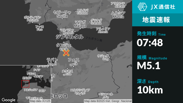 2月11日 07:48頃、モロッコのKsar El Kebirから東北東26kmの地点でM5.1の地震がありました。