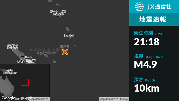 | 震源地 | バヌアツのIsangelから南南西124kmの地点 |