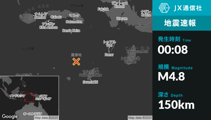 | 震源地 | インドネシアのTualから西南西290kmの地点 |