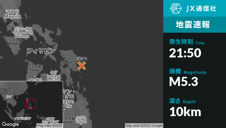 | 震源地 | フィリピンのLlorenteから北東37kmの地点 |