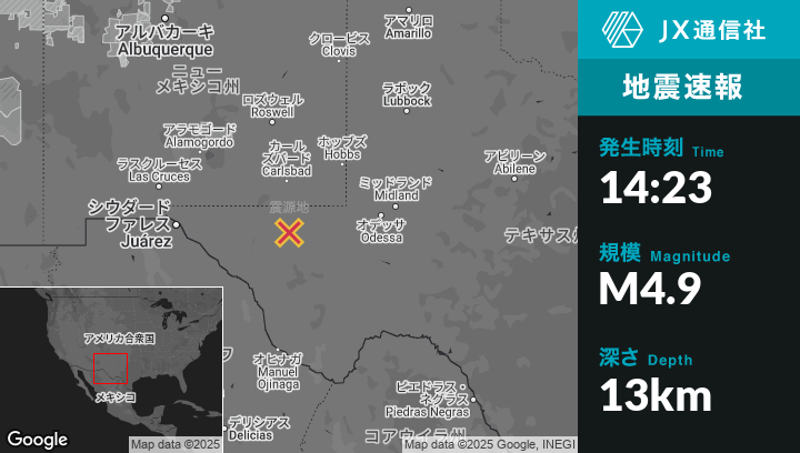 | 震源地 | テキサスのToyahから北西53kmの地点 |