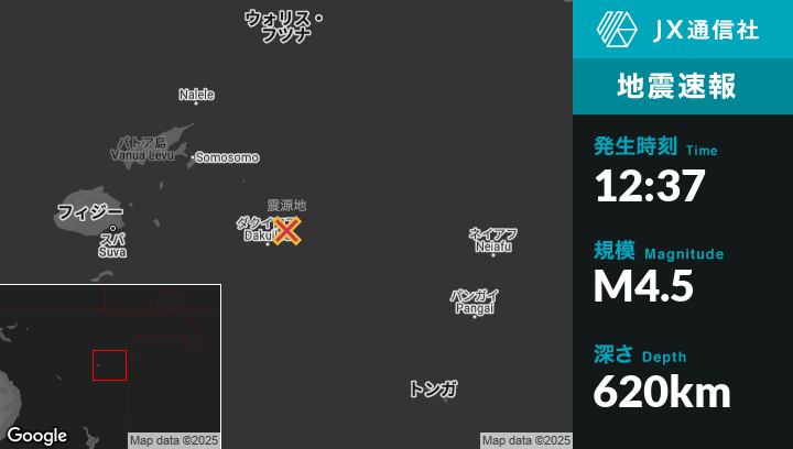 | 震源地 | フィジーのLevukaから東273kmの地点 |