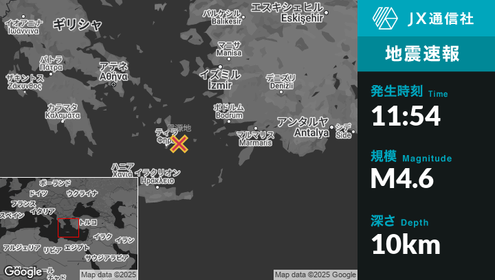 | 震源地 | ギリシャのAmorgósから南南西29kmの地点 |