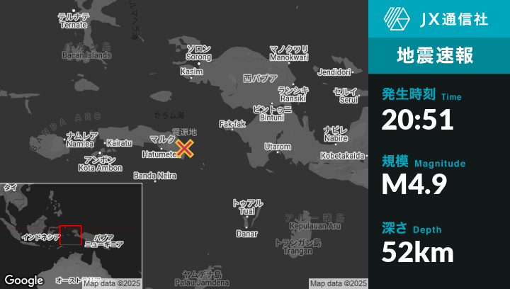 | 震源地 | インドネシアのFakfakから西南西173kmの地点 |