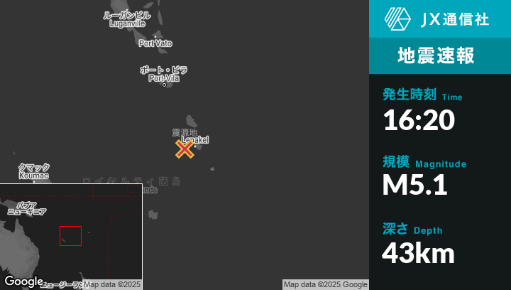 | 震源地 | バヌアツのIsangelから西36kmの地点 |