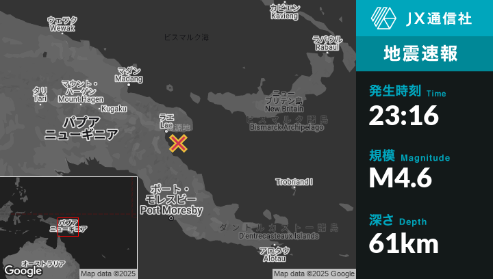 | 震源地 | パプアニューギニアのLaeから南東49kmの地点 |