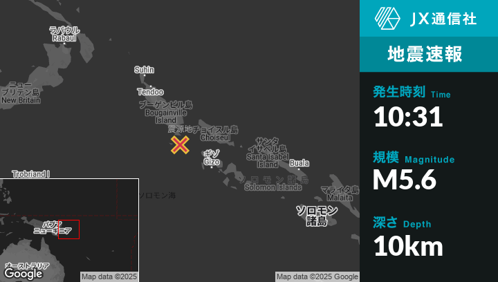 | 震源地 | パプアニューギニアのPangunaから南南東111kmの地点 |