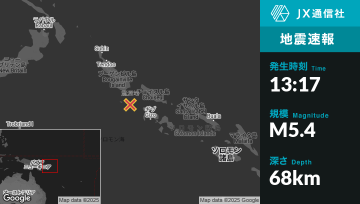 | 震源地 | パプアニューギニアのPangunaから南南東125kmの地点 |