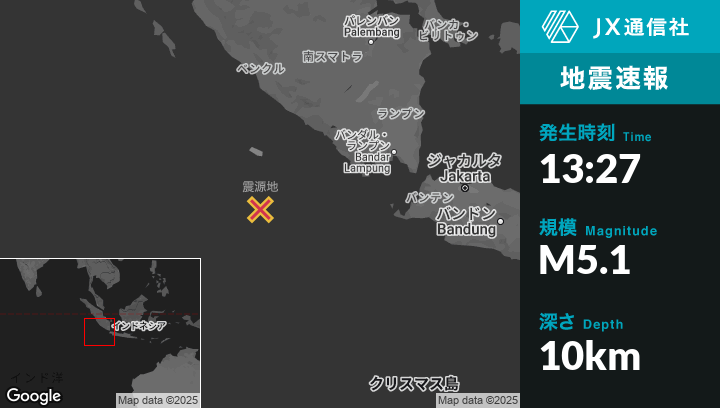 | 震源地 | インドネシアのPagar Alamから南南西296kmの地点 |