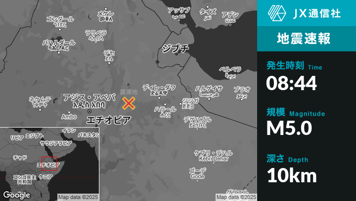 | 震源地 | エチオピアのĀsbe Teferīから北西60kmの地点 |