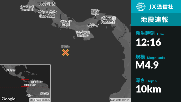 | 震源地 | パナマのBuricaから南南東197kmの地点 |