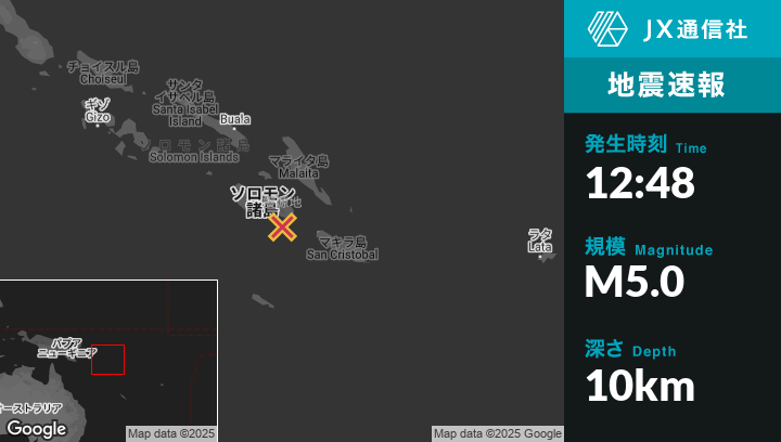 | 震源地 | ソロモン諸島のHoniaraから南東94kmの地点 |