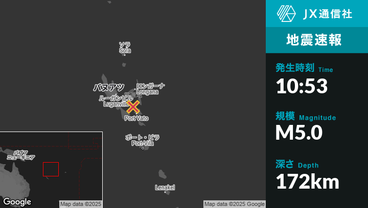| 震源地 | バヌアツのLakatoroから東北東54kmの地点 |