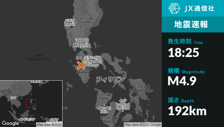 | 震源地 | フィリピンのTingloyから南東6kmの地点 |
