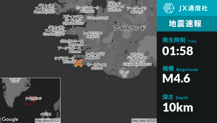 | 震源地 | アイスランドのVogarから南東3kmの地点 |