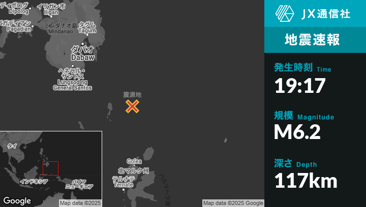 | 震源地 | フィリピンのPondaguitanから南東269kmの地点 |