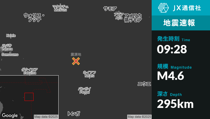 | 震源地 | トンガのNeiafuから北西184kmの地点 |