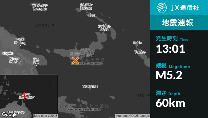 | 震源地 | パプアニューギニアのKandrianから東47kmの地点 |