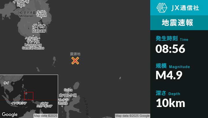 | 震源地 | インドネシアのTobeloから北292kmの地点 |