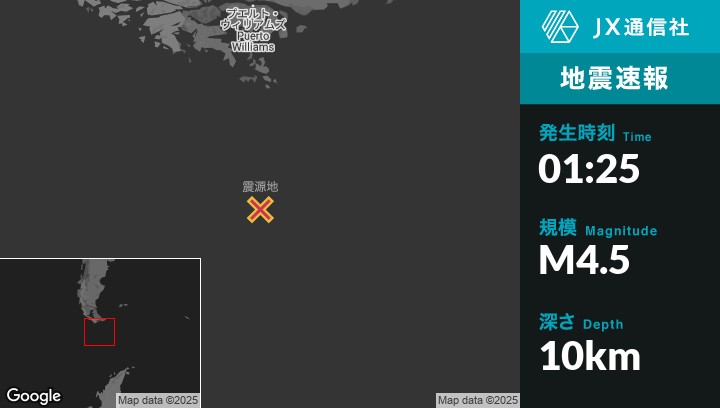 | 震源地 | アルゼンチンのUshuaiaから南288kmの地点 |