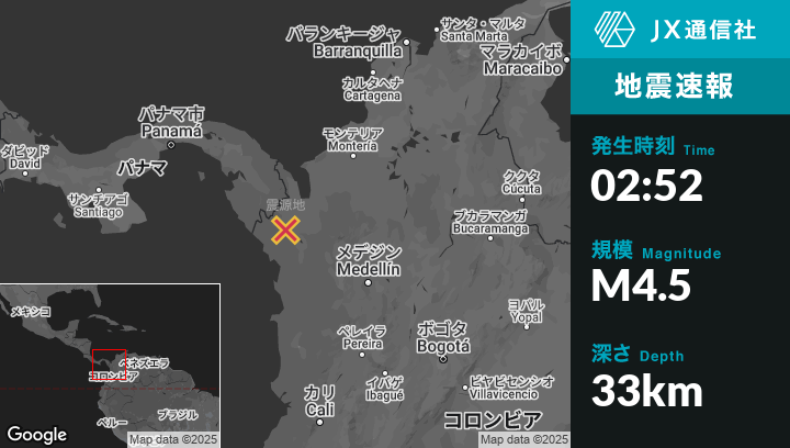 | 震源地 | コロンビアのRiosucioから西南西14kmの地点 |