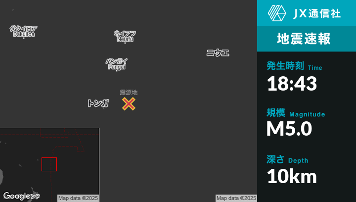 | 震源地 | トンガの‘Ohonuaから東北東120kmの地点 |