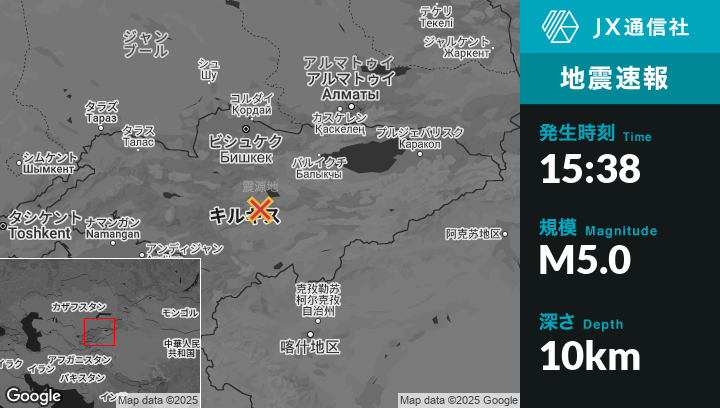 | 震源地 | キルギスタンのBaetovoから北43kmの地点 |
