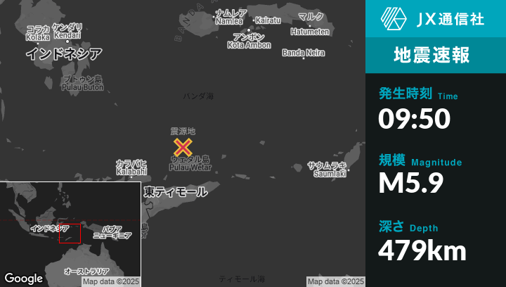 5月15日 09:50頃、東ティモールのManatutuから北148kmの地点でM5.9の地震がありました。