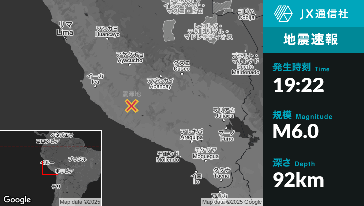 | 震源地 | ペルーのSan Pedroから西6kmの地点 |