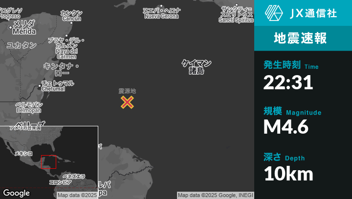 | 震源地 | ホンジュラスのSavannah Bightから北東228kmの地点 |