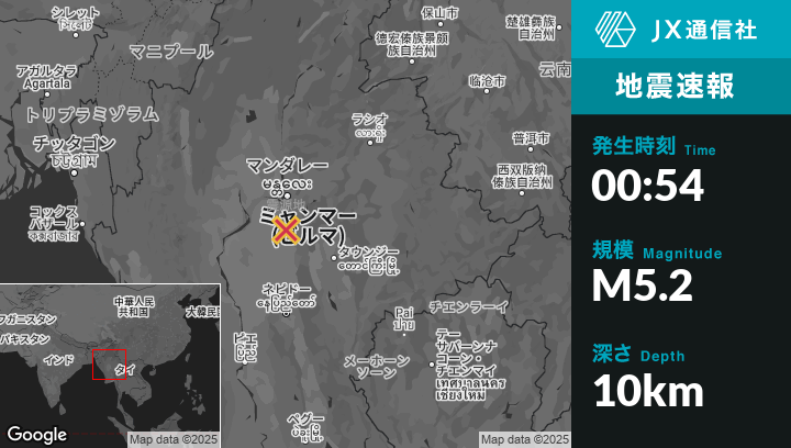 | 発生時刻 | 2025年5月18日 00時54分頃 |
