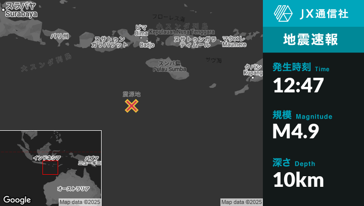 | 震源地 | インドネシアのTambolakaから南南西227kmの地点 |