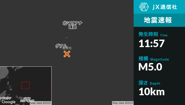| 震源地 | グアムのInarajan Villageから南東66kmの地点 |