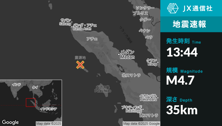 | 震源地 | インドネシアのSinabangから北西75kmの地点 |