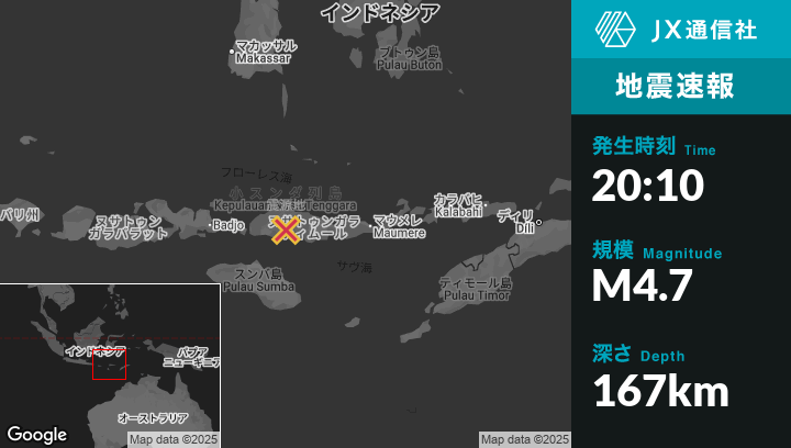 | 震源地 | インドネシアのRutengから東北東7kmの地点 |