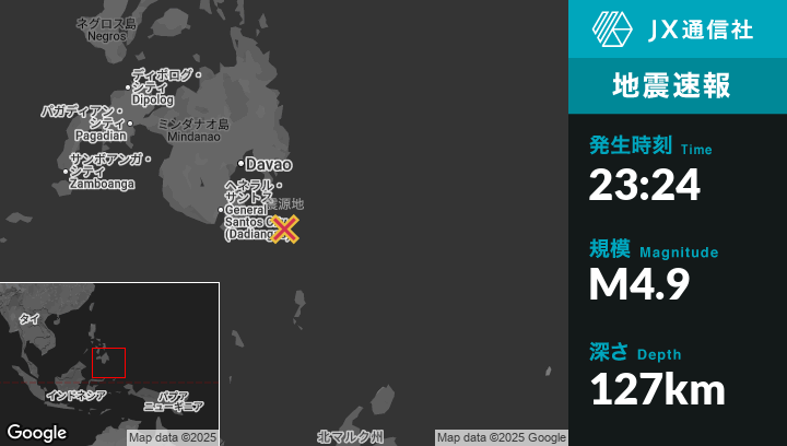 | 震源地 | フィリピンのPondaguitanから南南東62kmの地点 |