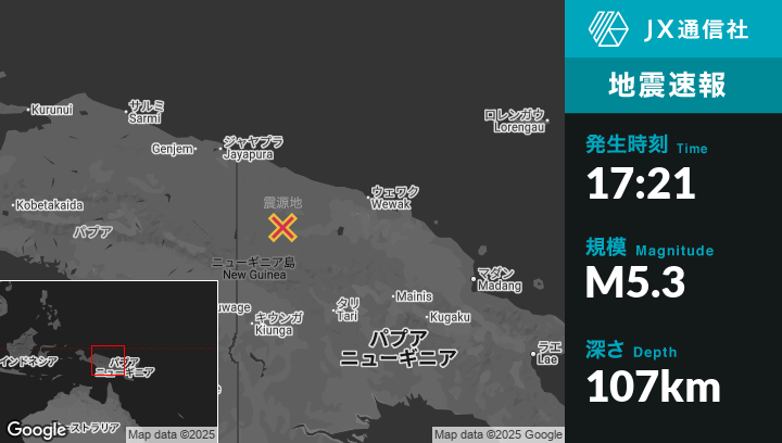 | 震源地 | パプアニューギニアのAmbuntiから西100kmの地点 |