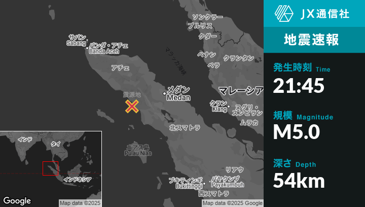 | 震源地 | インドネシアのBlangpidieから南東79kmの地点 |