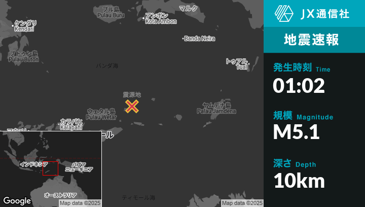 7月17日 01:02頃、東ティモールのLospalosから北北東152kmの地点でM5.1の地震がありました。