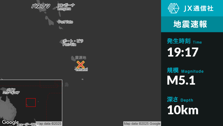| 震源地 | バヌアツのIsangelから北東63kmの地点 |