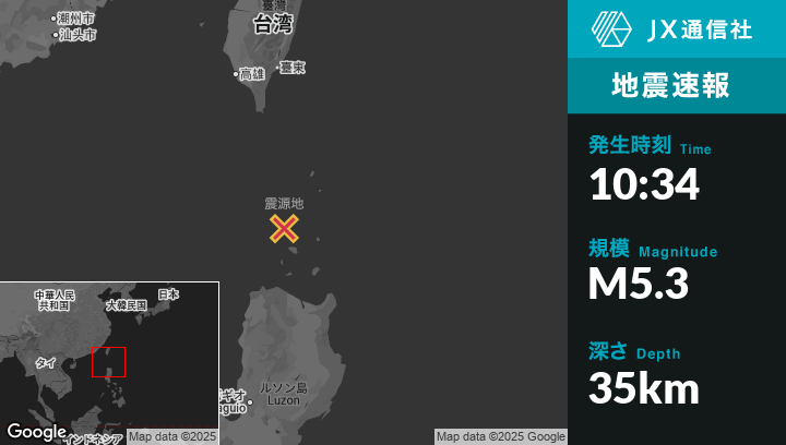 | 震源地 | フィリピンのBascoから南西100kmの地点 |