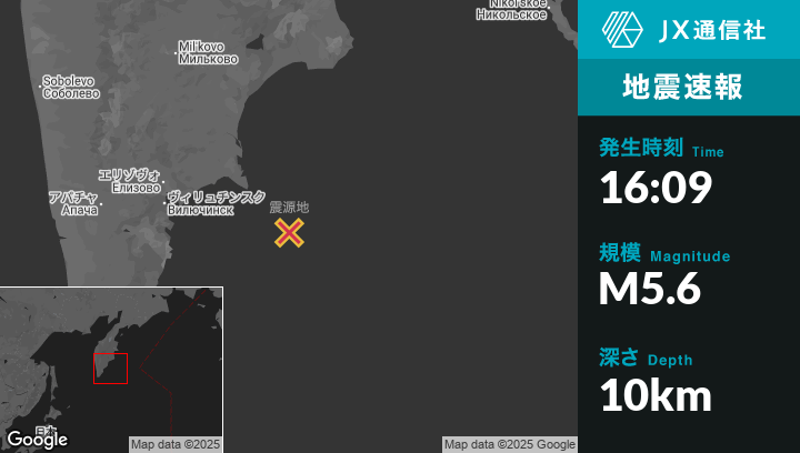 | 震源地 | ロシアのPetropavlovsk-Kamchatskyから東南東157kmの地点 |