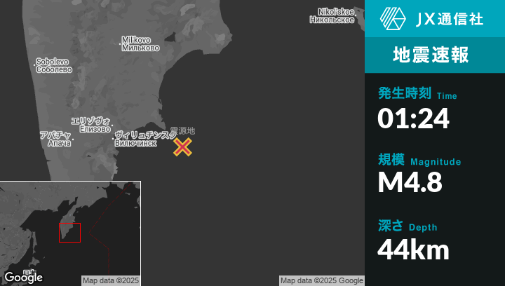 | 震源地 | ロシアのPetropavlovsk-Kamchatskyから東133kmの地点 |
